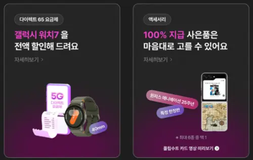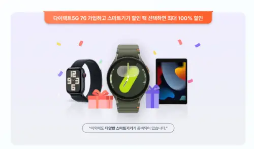 다이렉트5G 76 가입후 갤럭시 워치 울트라, 갤럭시 워치 7 등 스마트 기기 할인 팩을 선택하면 최대 100 % 할인해 드립니다.