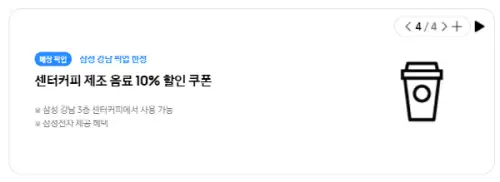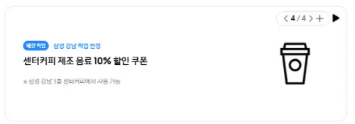 삼성 강남 매장 픽업 한정 : 센터커피 제조 음료 10% 할인 쿠폰 증정