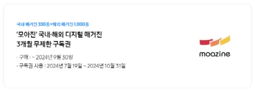 모아진 국내 해외 디지털 매거진 3개월 무제한 구독권