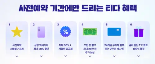 모든 갤럭시 z 플립6 사전예약 고객에게 T기프트 중에 한가지를 선택해서 받으실 수 있습니다.