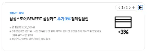 삼성스토어 베네핏 삼성카드 추가 3% 결제일 할인 (삼성카드 혜택)