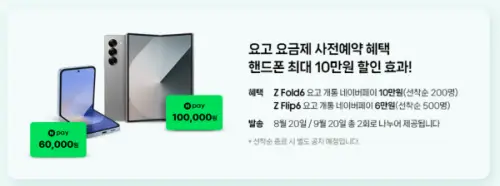 폴드6 요고 요금제 개통시 네이버페이 10만원을 선착순 200명에게 드립니다.