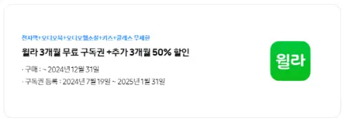 윌라 3개월 무표 구독권 + 추가 3개월 50% 할인