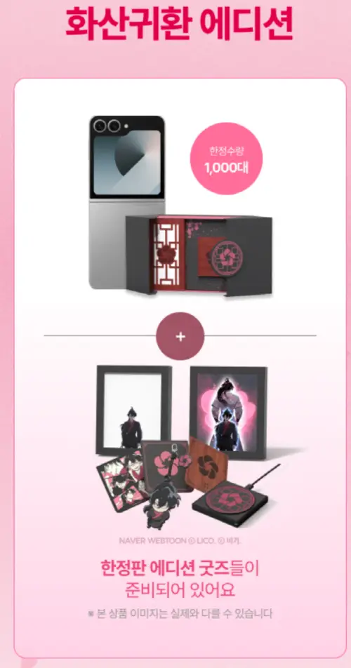 갤럭시 z 플립6 사전예약 화산귀환 에디션 굿즈가 준비되어 있습니다.