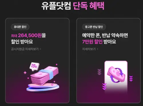 중고폰 반납하면 7만원 할인을 받을 수 있습니다.