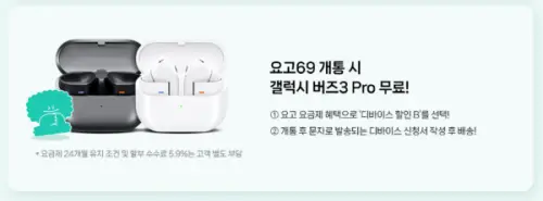 요고69 요금제 개통시 갤럭시 버즈 3 프로를 배송해 드립니다.