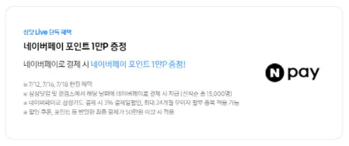 삼성 라이브 단독 혜택 네이버페이 포인트 1만P 증정 (7/12, 7/16, 7/18 한정혜택)