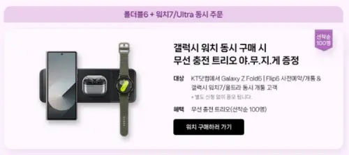 폴더블6와 갤럭시 워치 동시에 구매시 무선 충전 트리오를 증정합니다.