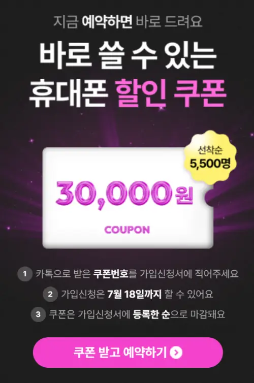 갤럭시 z 플립6 사전예약 선착순 5,500명에게 휴대폰 3만원 할인 쿠폰을 드립니다.