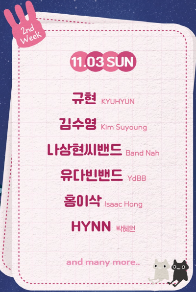 현재까지 3차 라인업이 공개되었으며, 곧 최종 라인업이 발표될 예정입니다.