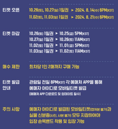 양도 불가: 예매 후 양도나 환불은 제한적이므로, 신중하게 예매를 진행하세요.