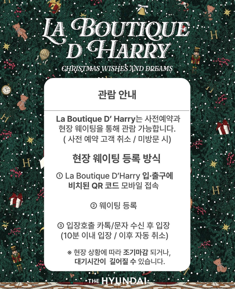 올해도 LA BOUTIQUE D’ HARRY 라느 이름으로 크리스마스 팝업을 하는데 사전예약을 해야만 이곳에 들어갈 수 있습니다.