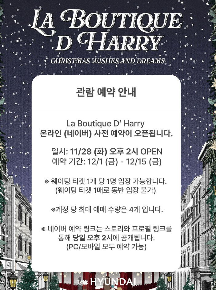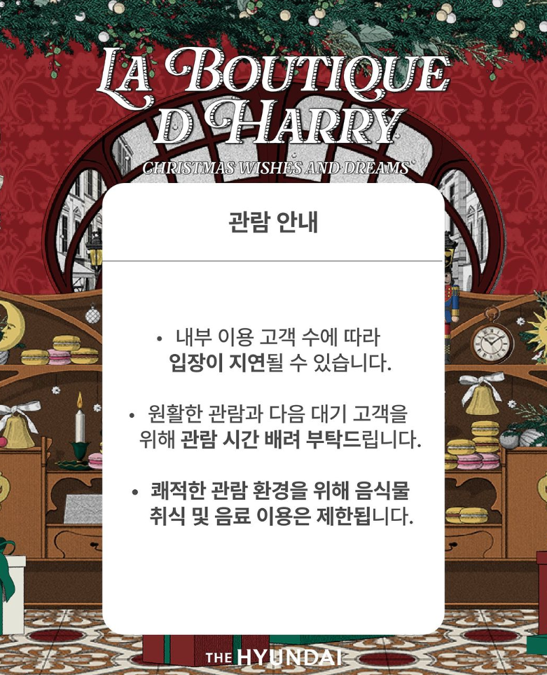 LA BOUTIQUE D’ HARRY는 사전예약과 현장 웨이팅을 통해 관람 가능합니다.