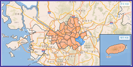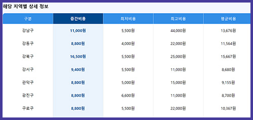지역 별과 항목 별로 최저, 최고, 평균, 중간 비용을 알아볼수 있습니다.