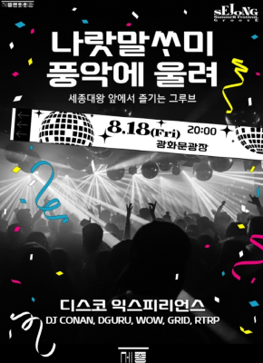 - 8.18(금): 디스코 익스피리언스 "나랏말싸미 풍악에 울려"