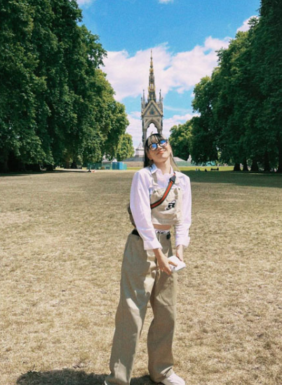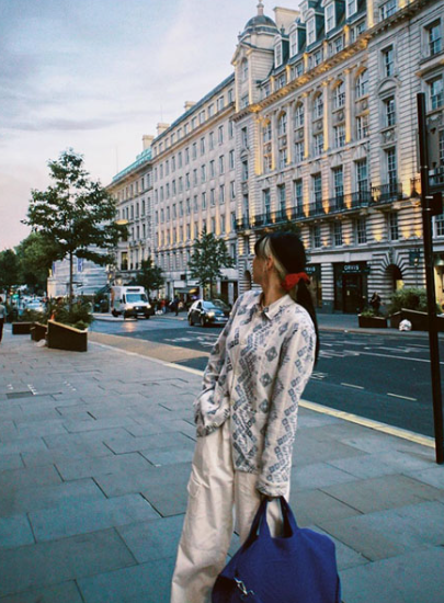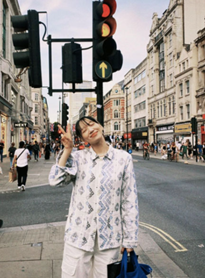 런던으로 여행을 떠난 바다는 아이보리, 베이지톤의 컬러로 페미닌 무드를 연출했습니다.