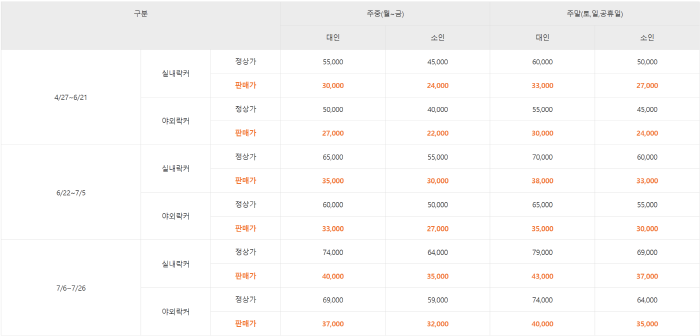 | [야외락커] 어른 및 청소년 | 79,000 |