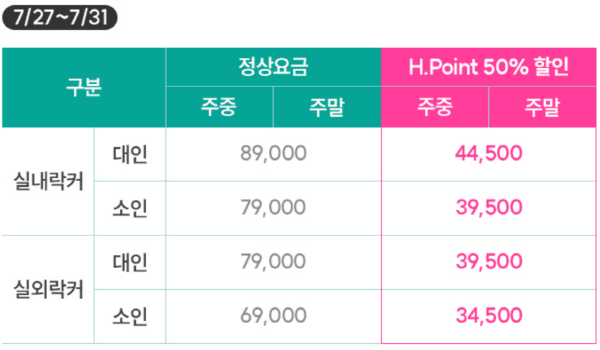 H.Point회원이라면 온라인 예약 시 50% 할인 혜택을 받을 수 있습니다.