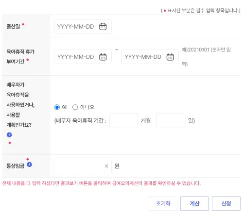 육아휴직급여를 얼마나 받게 되는지 궁금하시죠? 아래에서 육아휴직 급여 계산기를 통해서 간단하게 계산해 보실수 있습니다.