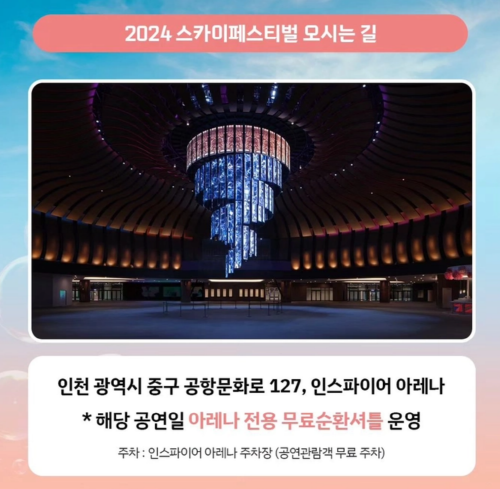 ✔️ 자세한 내용은 카카오 T 셔틀의 "2024 스카이페스티벌 셔틀" 예약 상세페이지를 통해 확인해 주시기 바랍니다.