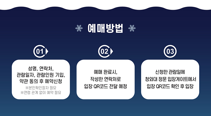 02 예매 완료 시, 작성한 연락처로 입장 QR코드 전달 예정