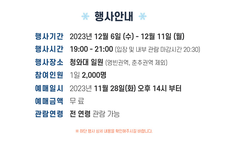 - 행사기간 : 2023년 12월 6일 (수) ~ 12월 11일 (월)