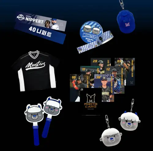 유니폼과 응원도구, 캐릭터 상품이 예쁘네요