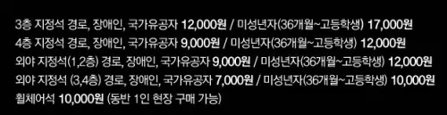 미성년자 (36개월 ~ 고등학생) 12,000원