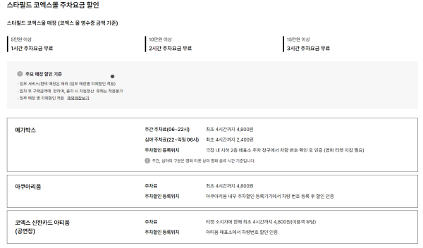 15만원 이상 : 3시간 코엑스 주차 요금 무료