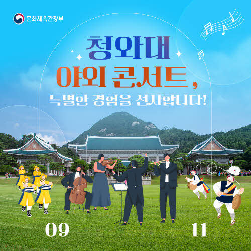 문화체육관광부에서 주최하는 청와대 야외 콘서트는 대한민국의 대표적인 무대로 자리매김하려는 큰 의지가 담겨있습니다.