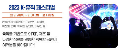 2023 K-뮤직 페스티벌은 국악을 중심으로 다양한 장르와 융합한 특별한 공연입니다.