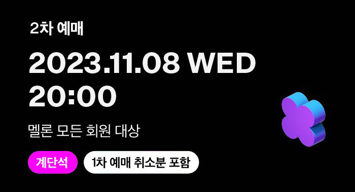 2023 MMA 티켓은 11월 6일과 11월 8일 2차에 걸쳐 진행됩니다. 11월 6일 오후 8시에는 멜론 GOLD 등급 이상인 분들을 대상으로 선예매가 진행이 되며 11월 8일 오후 8시부터는 멜론 전체 회원을 대상으로 일반 예매가 진행이 됩니다.
